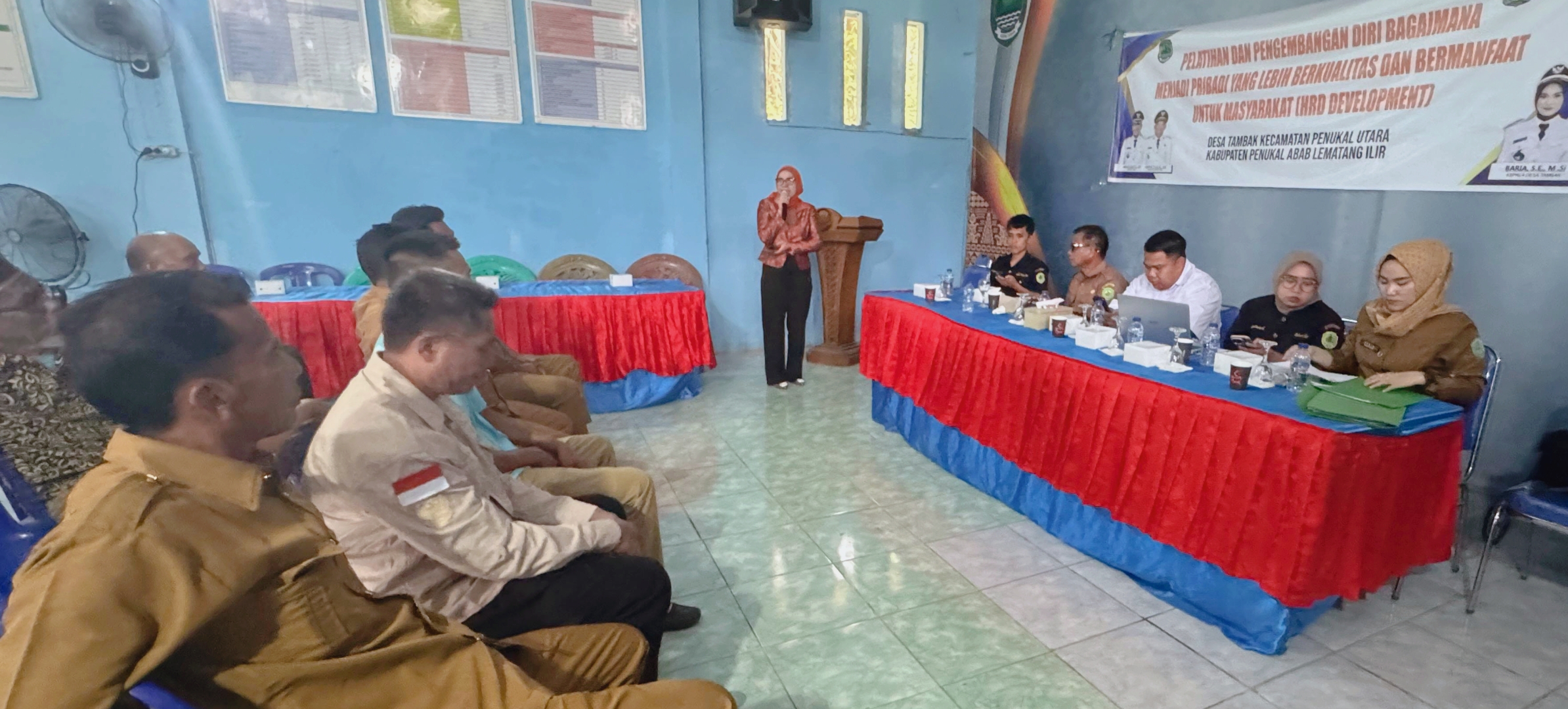 Kepala Desa Tambak, Baria, SE, MSI, dihadapan awak media ini menjelaskan, bahwa pelatihan HRD Development bertujuan untuk meningkatkan kualitas individu, baik sebagai aparatur pemerintahan desa maupun sebagai bagian dari masyarakat secara umum.